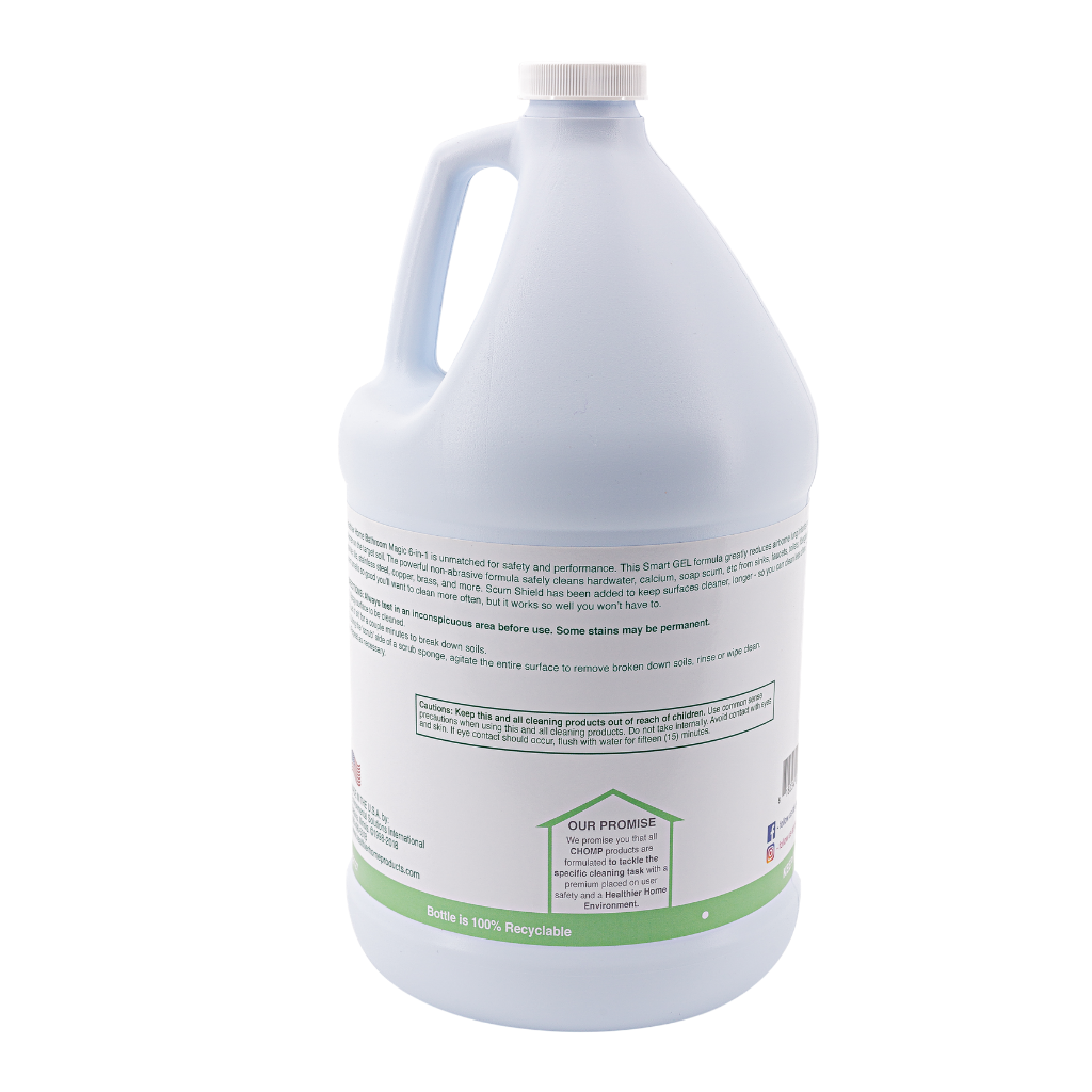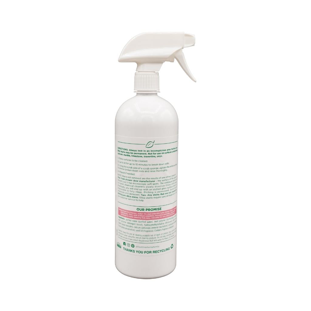 Bathroom Magic 6-In-1 Hardwater Stain Cleaner is a non-abrasive spray formula that safely cleans hard water, calcium, and soap scum from glass, plastic, fiberglass, chrome, aluminum and other shower surfaces. You’ll be left with nothing but a light, grapefruit scent. Surfaces will be cleaner for longer with months of protection from our patented Scum Shield™ polymer.