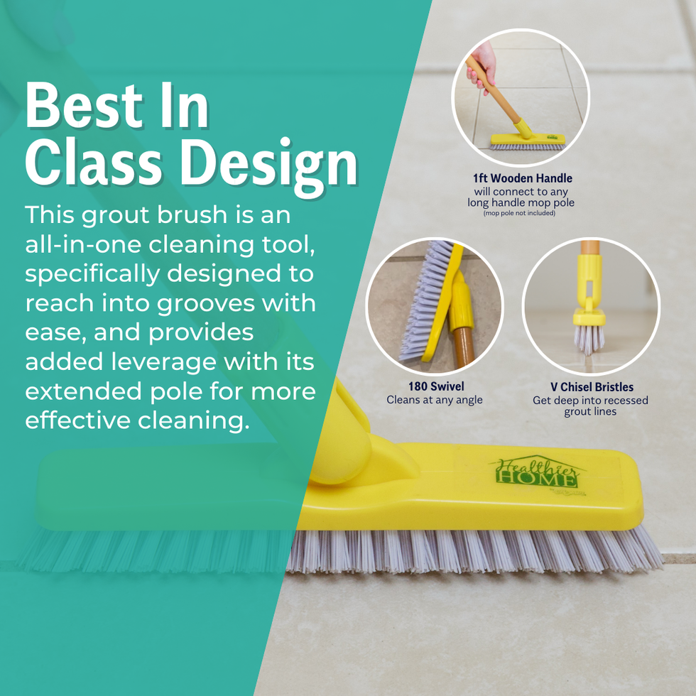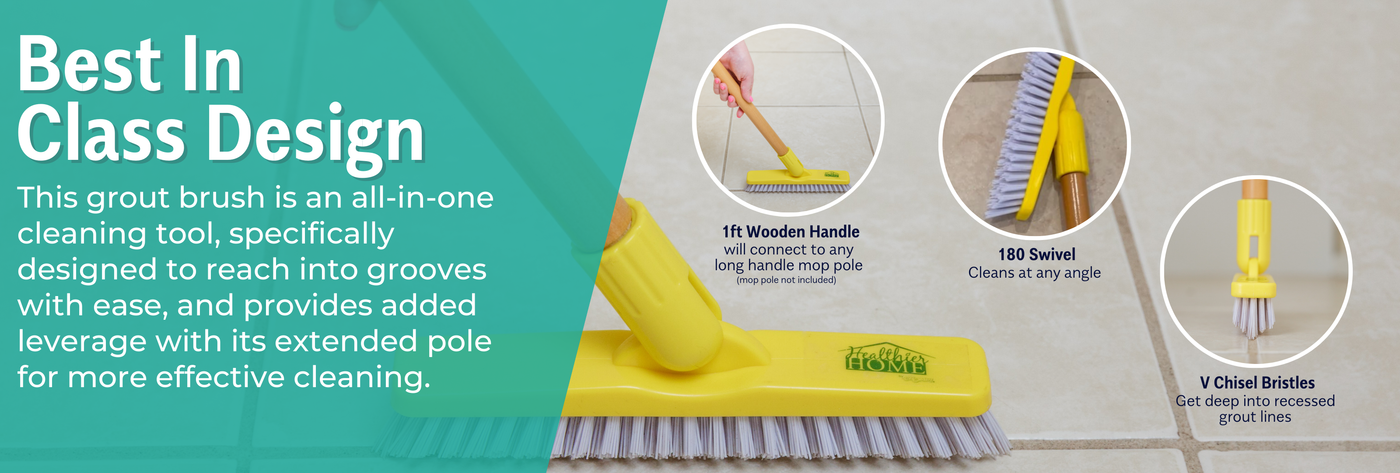- Includes Grout Cleaner Brush With V-Shape Stiff Bristles - Specially-made brush that's easy-to-use while cleaning and brightening shower grout and tile floor grout. Works well for cleaning along baseboards, narrow grout lines, corners, and tight spaces. Stiff bristles remove dirt, tough stains, and spots without scratching the surface.